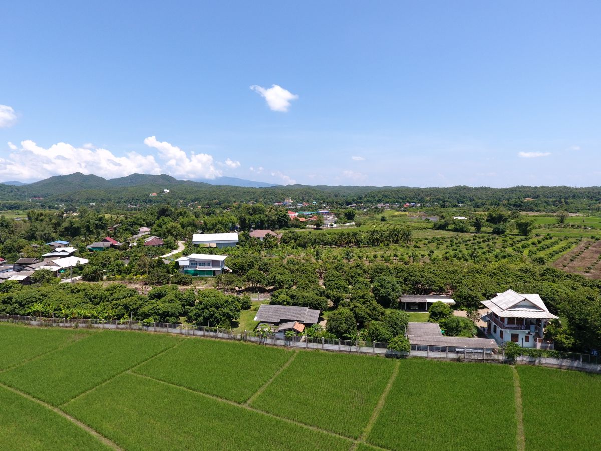 ทำเลดี เหมาะสำหรับบ้านพักตากอากาศ ทามกลางธรรมชาติ พร้อมวิวภูเขา ทุ่งนา วิวสวยมาก มีลำน้ำไหลผ่านตลอดทั้งปี